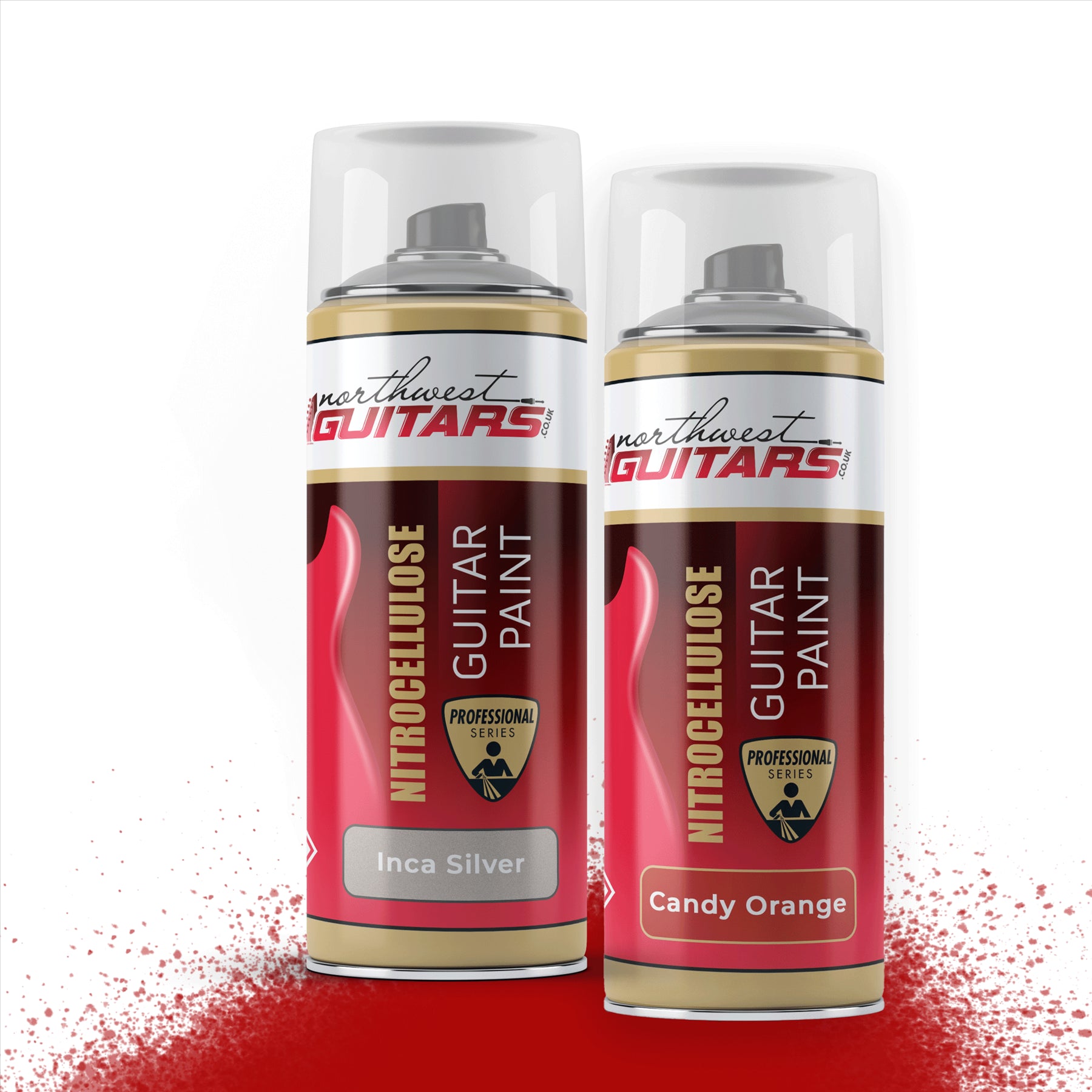 Recreate the stunning Fender Candy Cola finish with our premium nitrocellulose aerosol kit. Candy Cola combines an Inca Silver base coat with a rich, orangey-red candy top coat for a deep, metallic glow that shifts beautifully under the light.