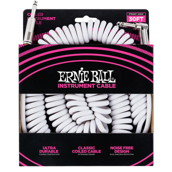 Ernie Ball Coiled Guitar Cable Straight/Angle White - 30ft (9.14m)iled Instrument Cable Straight/Angled Jacks White