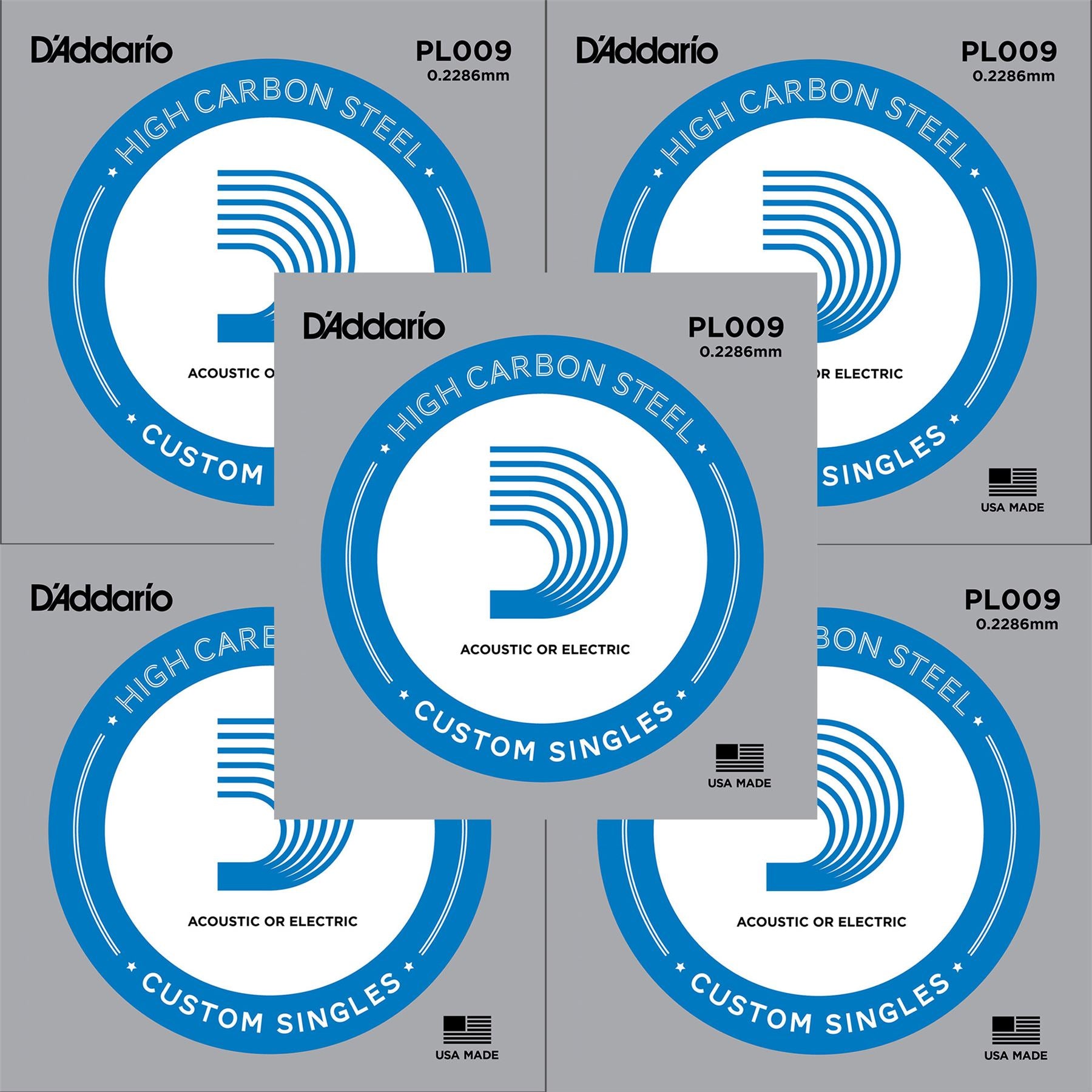5 x D'Addario Plain Steel Single Strings .009