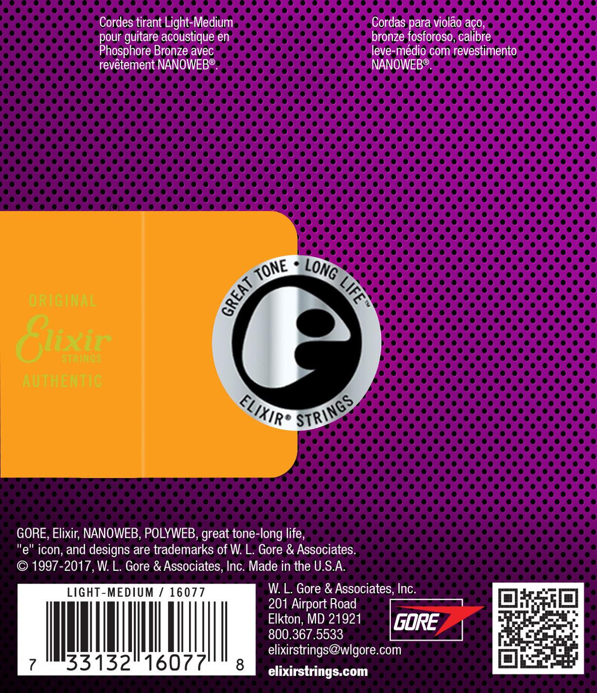 Elixir 16077 Phosphor Bronze Nanoweb Acoustic Strings - Light-Medium 12 - 56