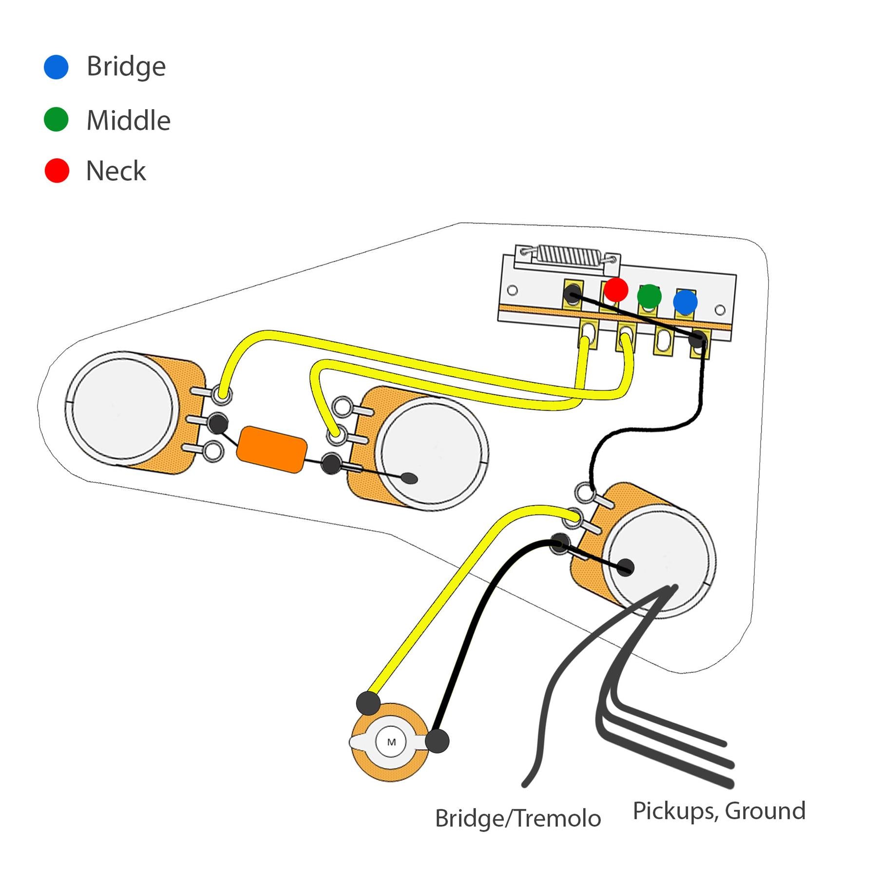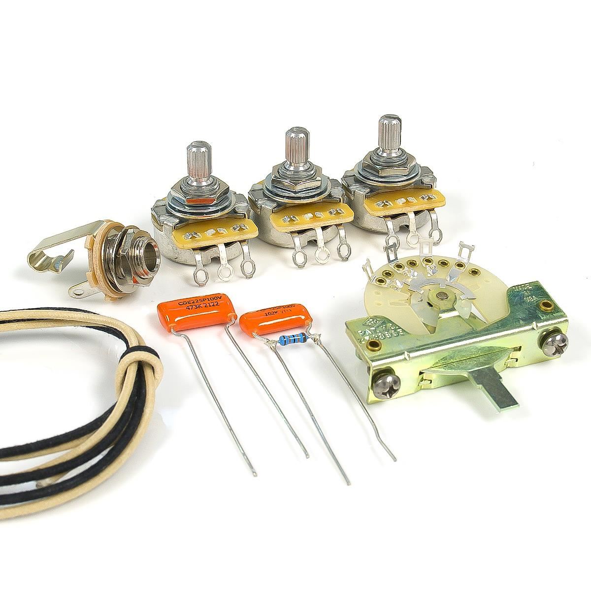 This Stratocaster Standard Wiring Kit is a powerful upgrade for the stock electronics of your Fender/Squier Stratocaster. Packed with high quality components from top manufacturers, its an inexpensive way to improve the tonality of your guitar.