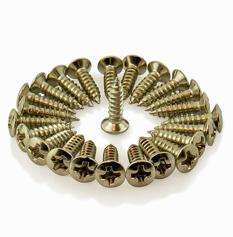 Recessed head screws for fitting of scratchplates, pickguards, jack plates and other guitar hardware