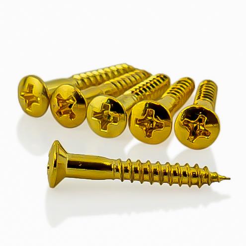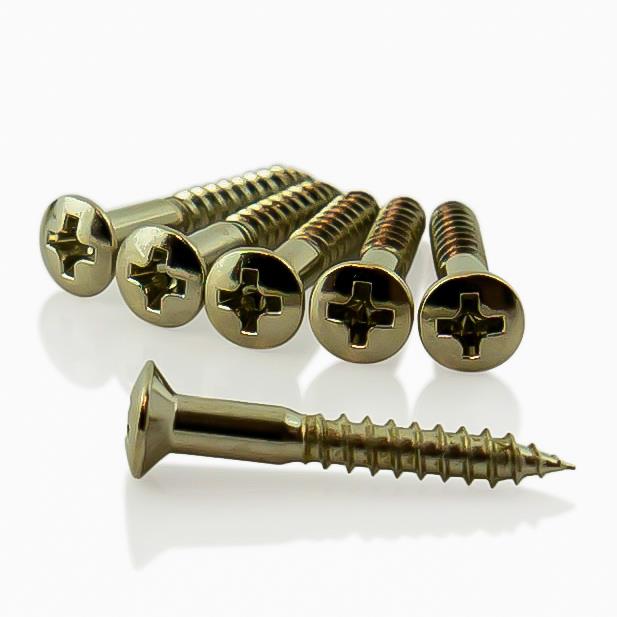 Countersunk screws for fitting of guitar bridges, and other hardware where a flush finish is required