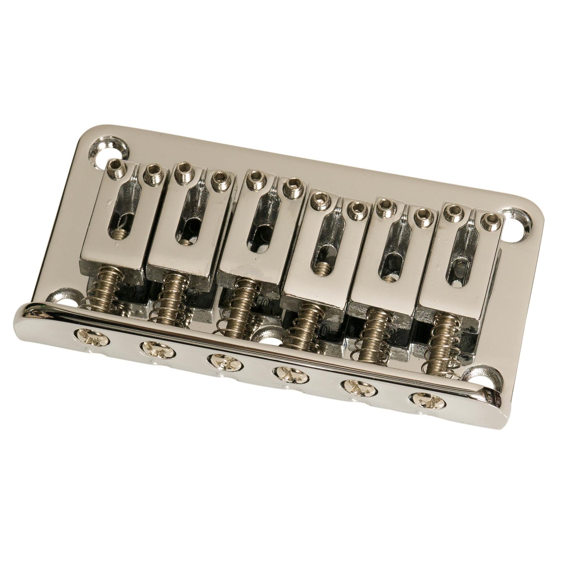 Designed to fit the vast majority of contemporary Strat and Telecaster guitars, this top-loading Hardtail Guitar Bridge with Modern Saddles makes a great replacement for your existing guitar, or as part of a brand-new guitar build.