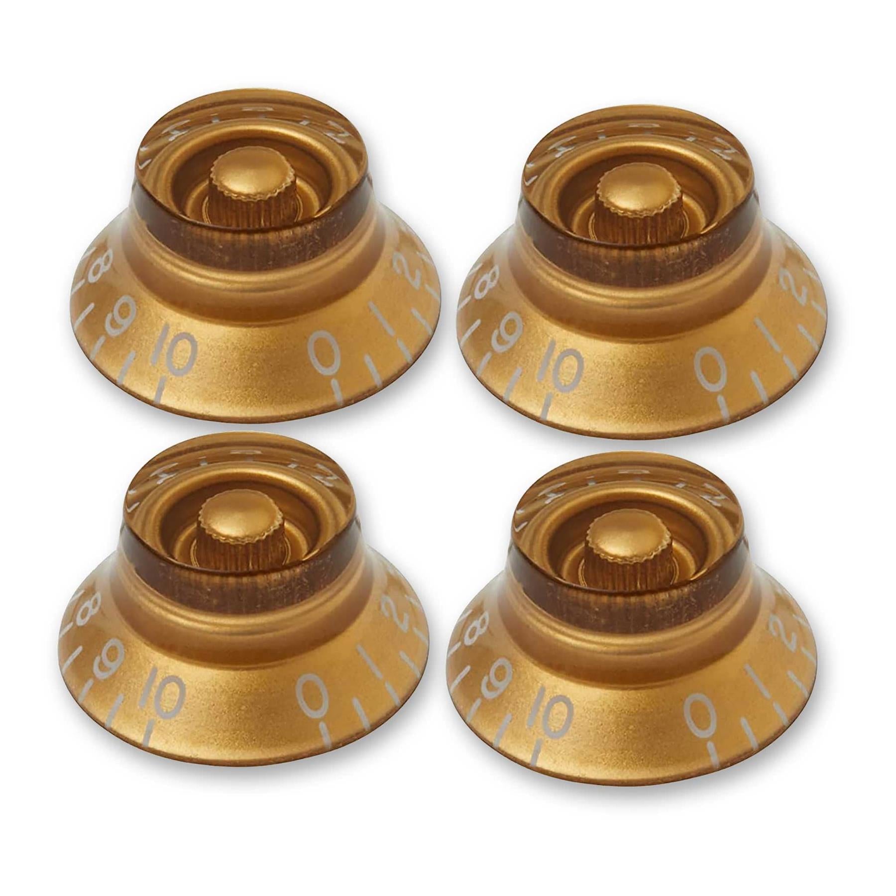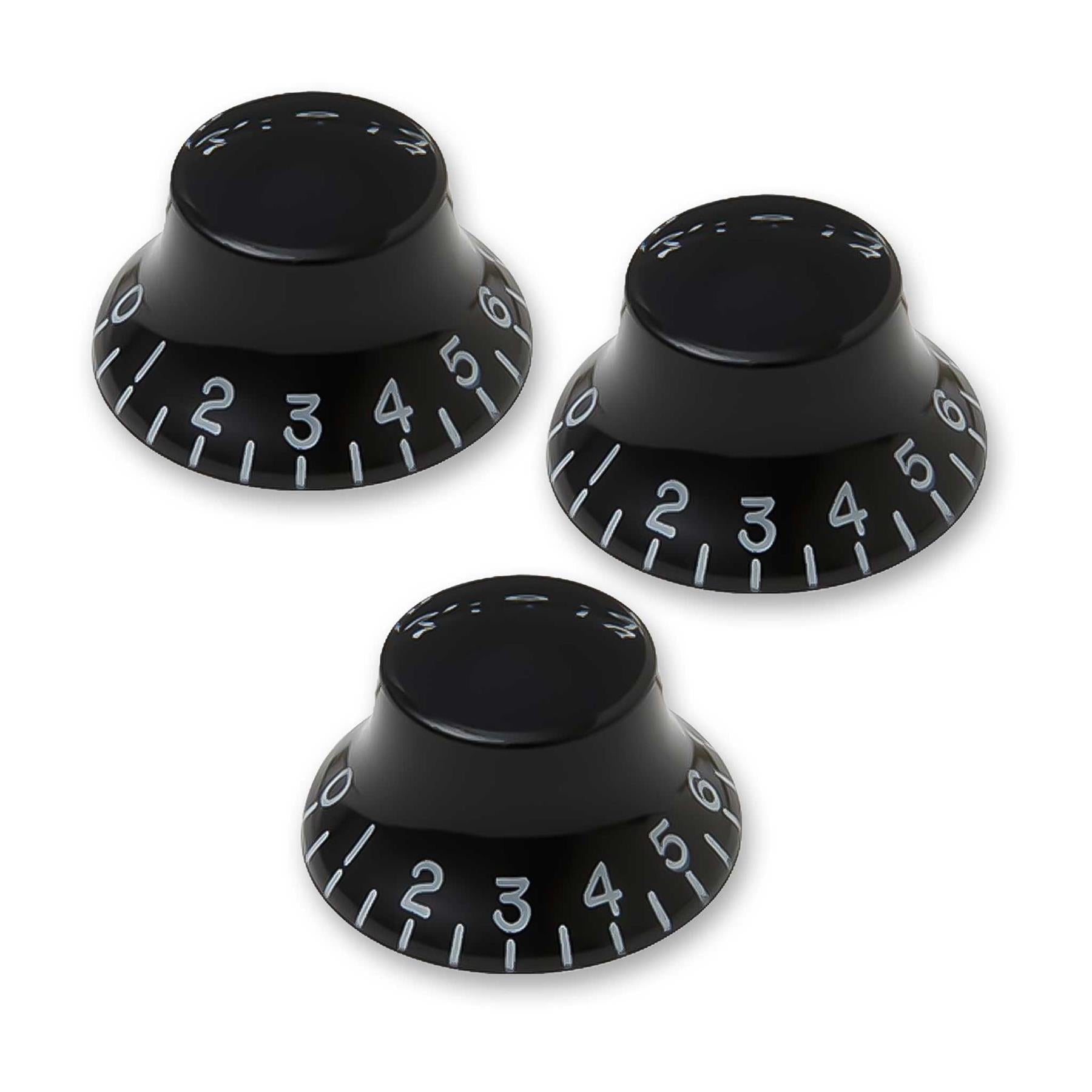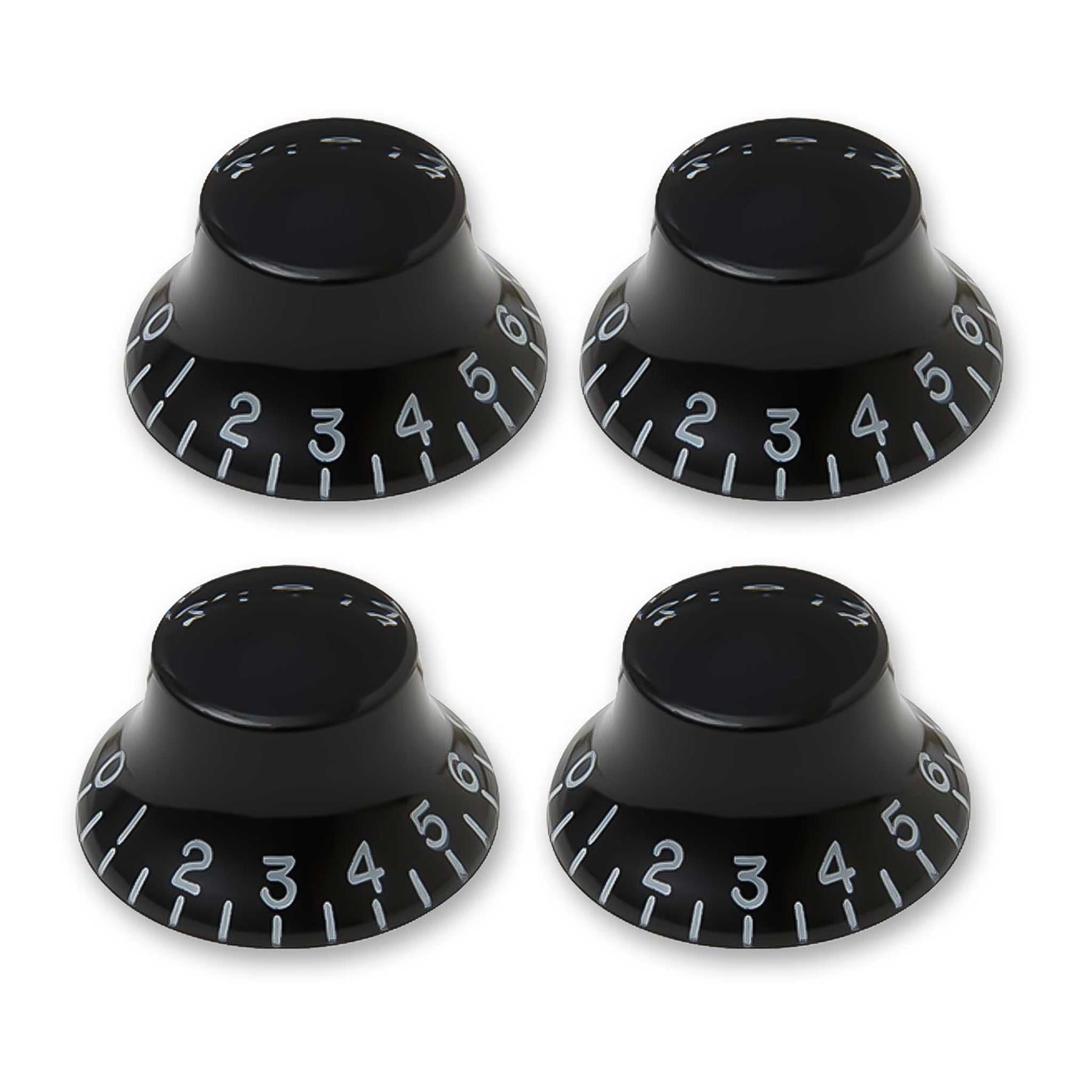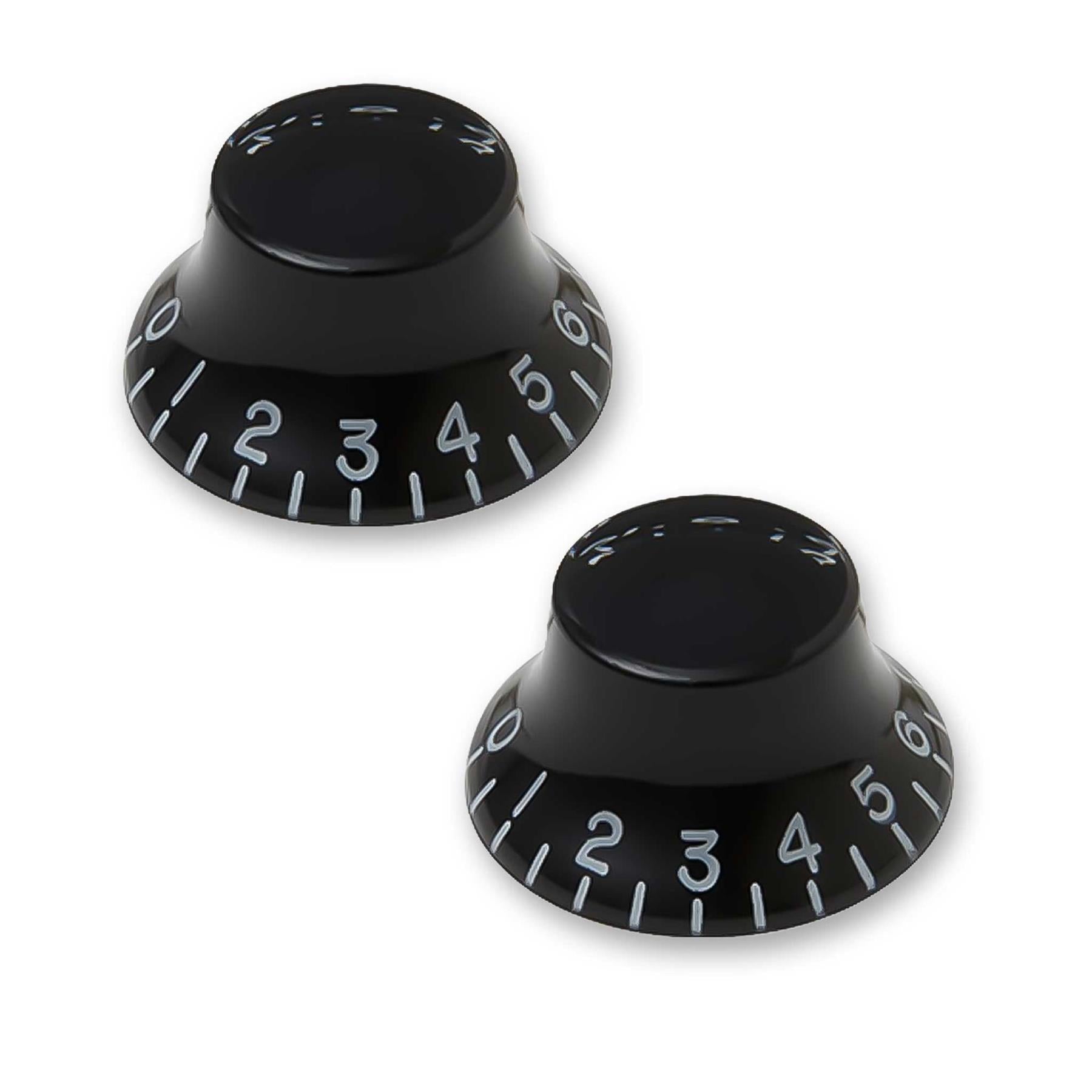 These bell-shaped control knobs are designed to provide a precise, reliable fit on a wide range of Gibson, Epiphone, and imported electric guitars. Made from durable moulded plastic with clear numbering, they offer smooth rotation and an authentic vintage-style appearance commonly found on Les Paul, SG, ES, and similar models.