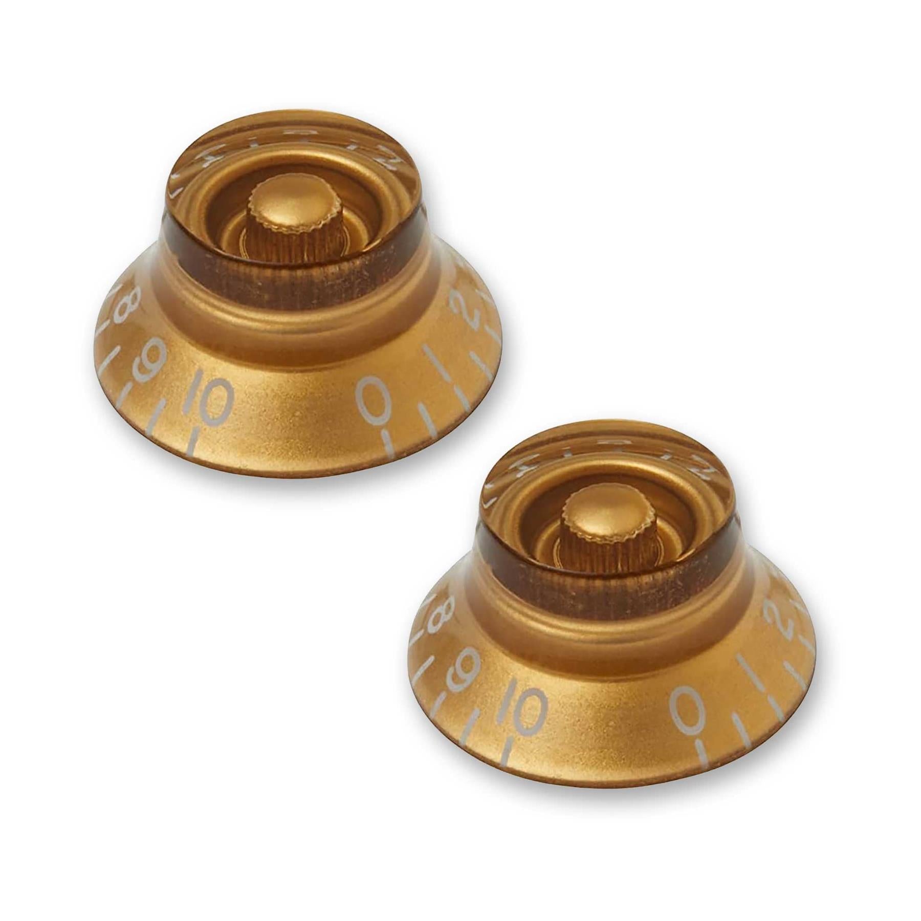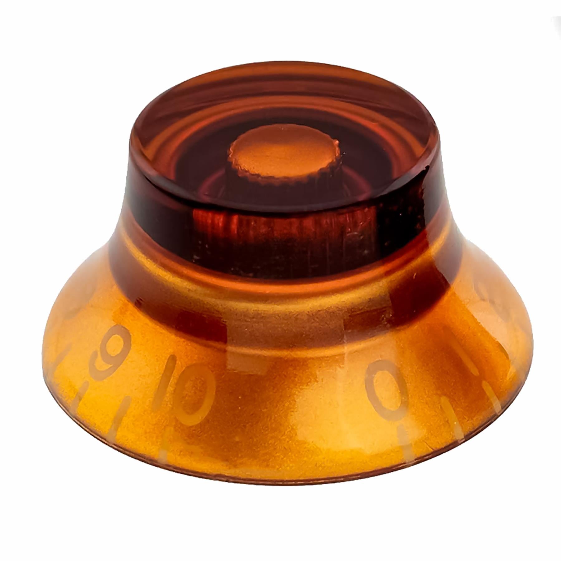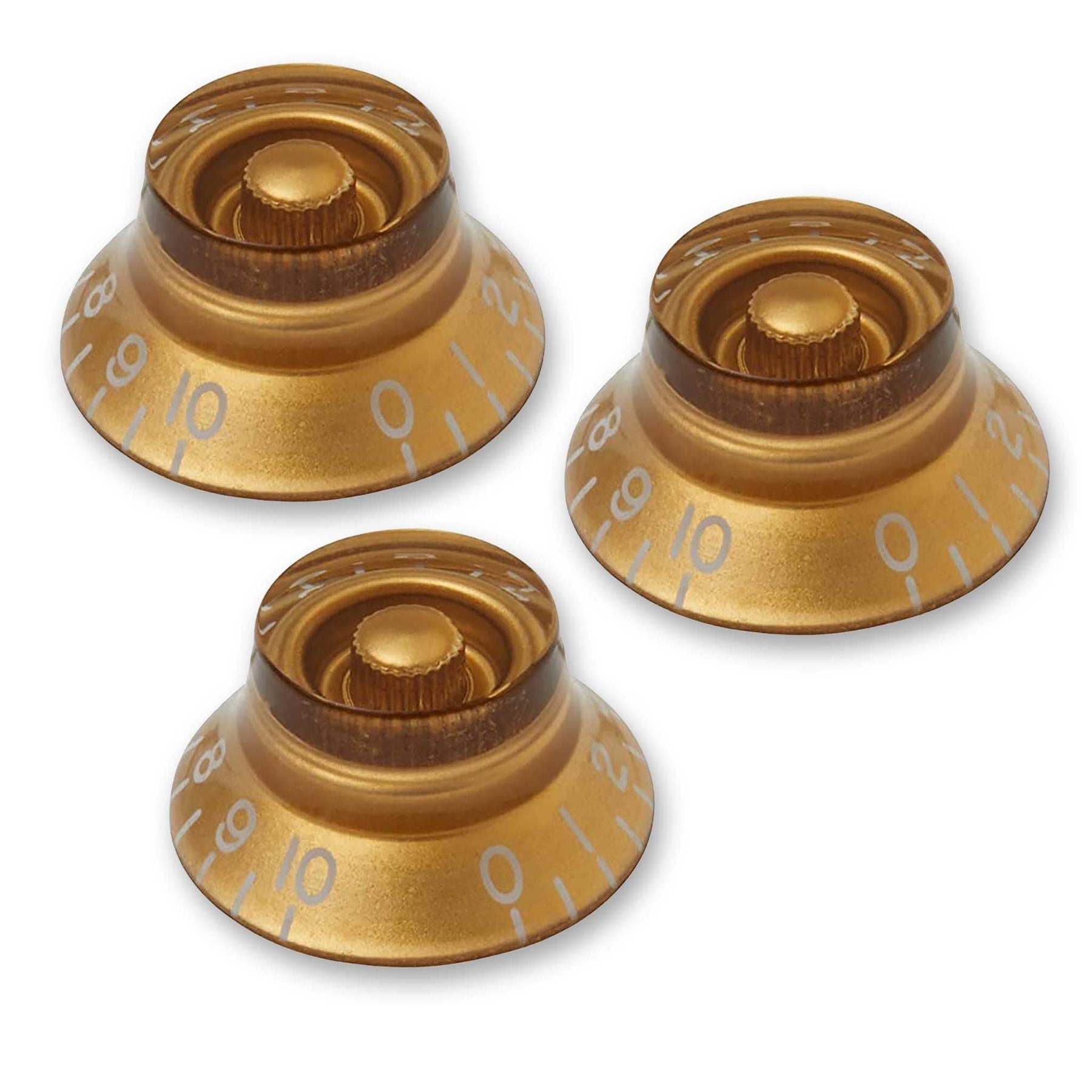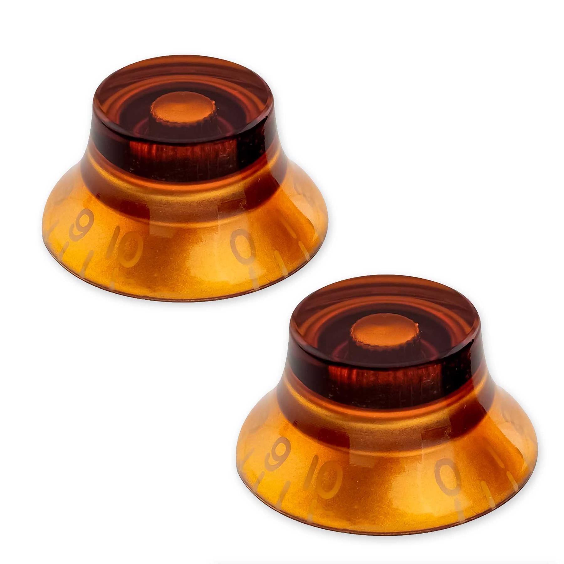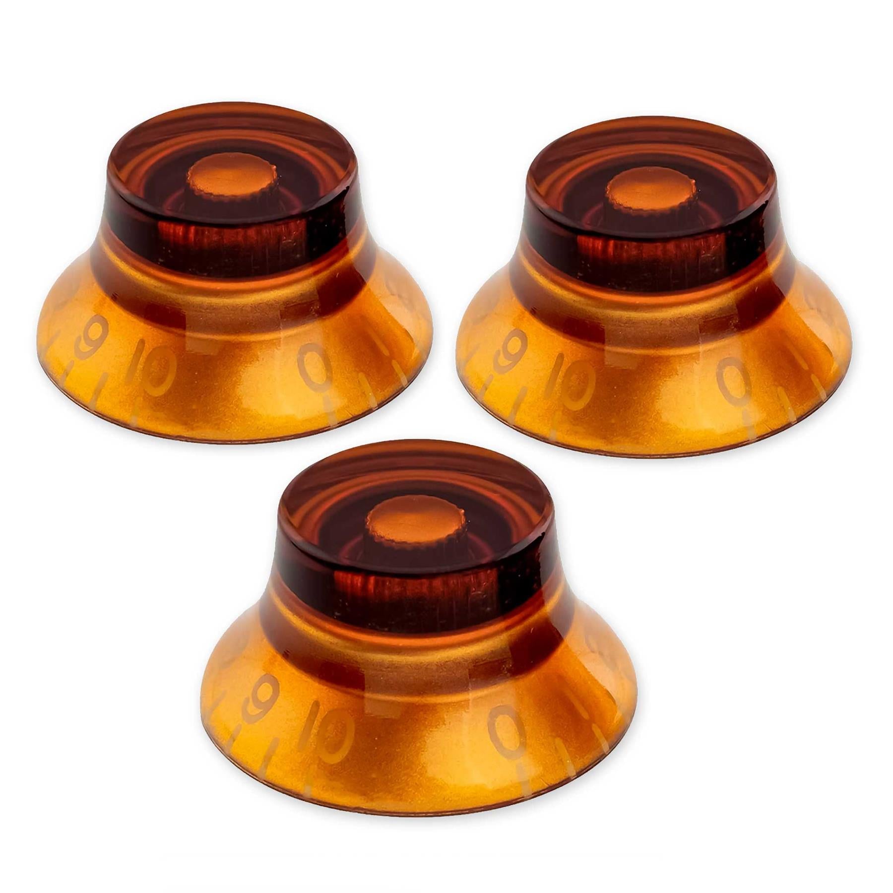 These bell-shaped control knobs are designed to provide a precise, reliable fit on a wide range of Gibson, Epiphone, and imported electric guitars. Made from durable moulded plastic with clear numbering, they offer smooth rotation and an authentic vintage-style appearance commonly found on Les Paul, SG, ES, and similar models.
