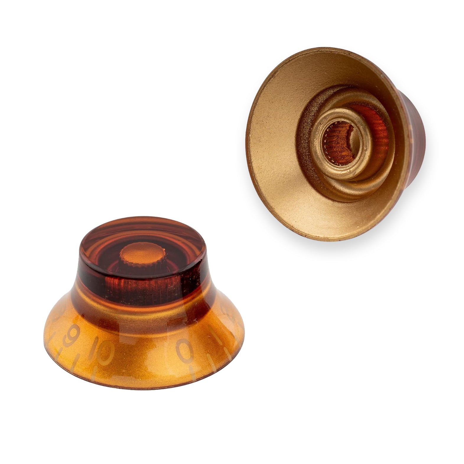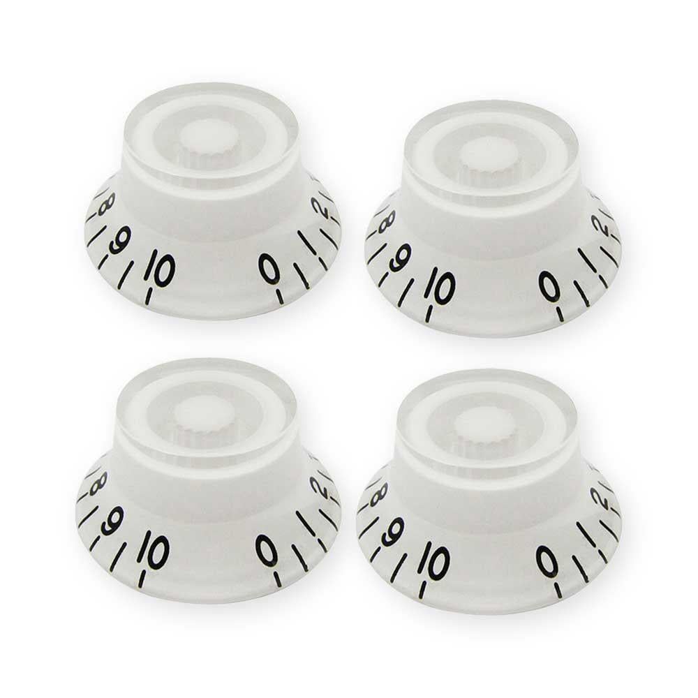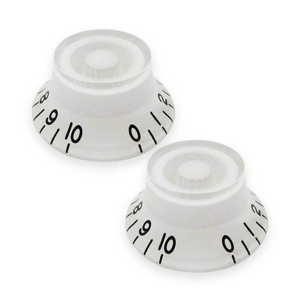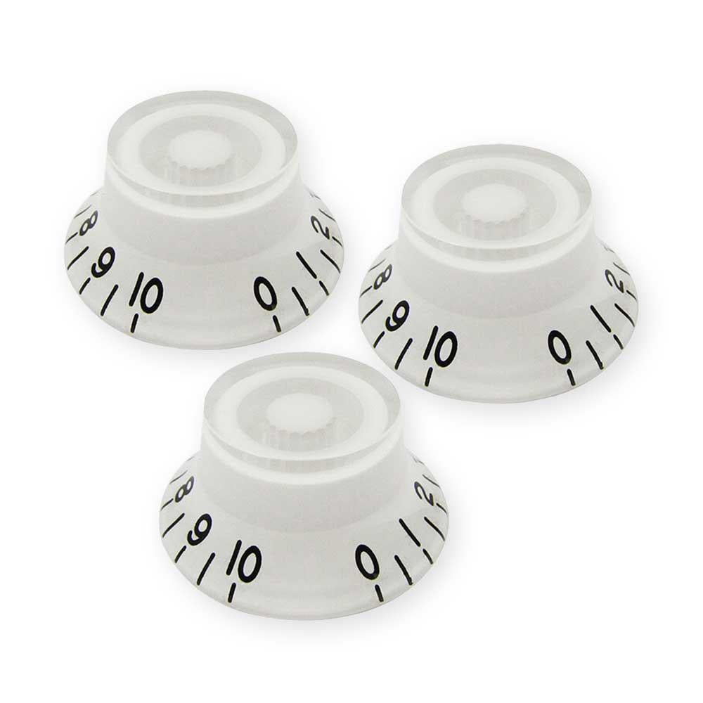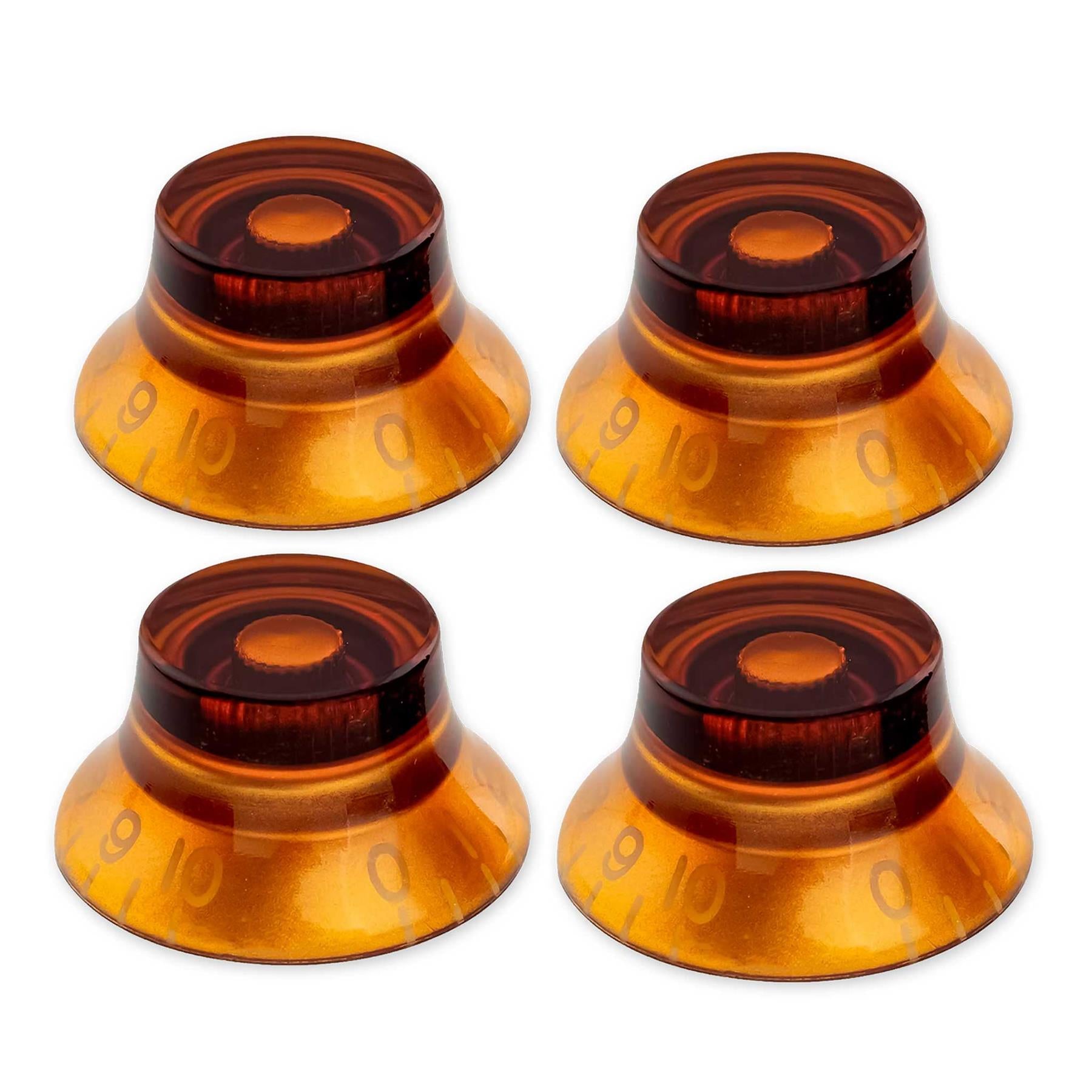 These bell-shaped control knobs are designed to provide a precise, reliable fit on a wide range of Gibson, Epiphone, and imported electric guitars. Made from durable moulded plastic with clear numbering, they offer smooth rotation and an authentic vintage-style appearance commonly found on Les Paul, SG, ES, and similar models.