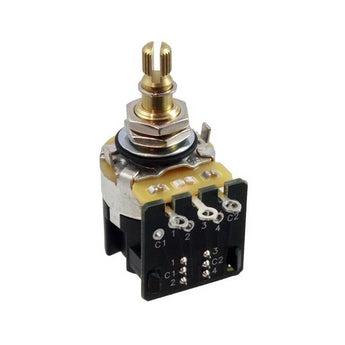 These pots feature a unique push-pull design that allows them to function as both standard potentiometers and as a switch. When the potentiometer is pulled up, the switch is engaged, allowing for additional tonal options such as phase switching & coil tapping.