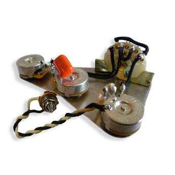 All our harnesses are assembled by us here in the UK using high quality silver solder and USA made vintage cloth push-back wire. We even solder the output jack so the whole thing is ready to drop-in.