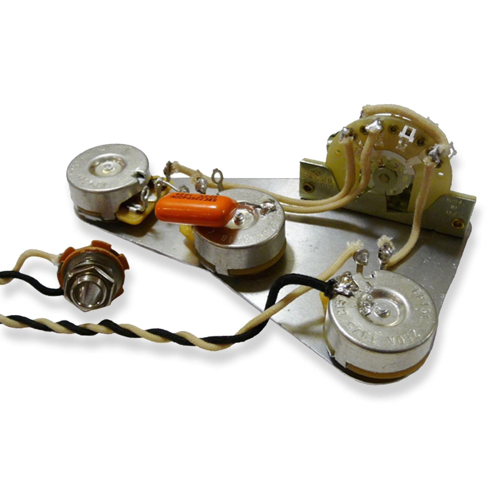 All our wiring harnesses are assembled by us here in the UK using high quality silver solder and USA made vintage cloth push-back wire. We even solder the output jack so the whole thing is ready to drop-in.