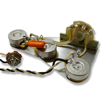 All of our wiring harnesses are assembled by us here in the UK using high quality silver solder and USA made vintage cloth push-back wire. We even solder the output jack so the whole thing is ready to drop-in.