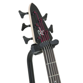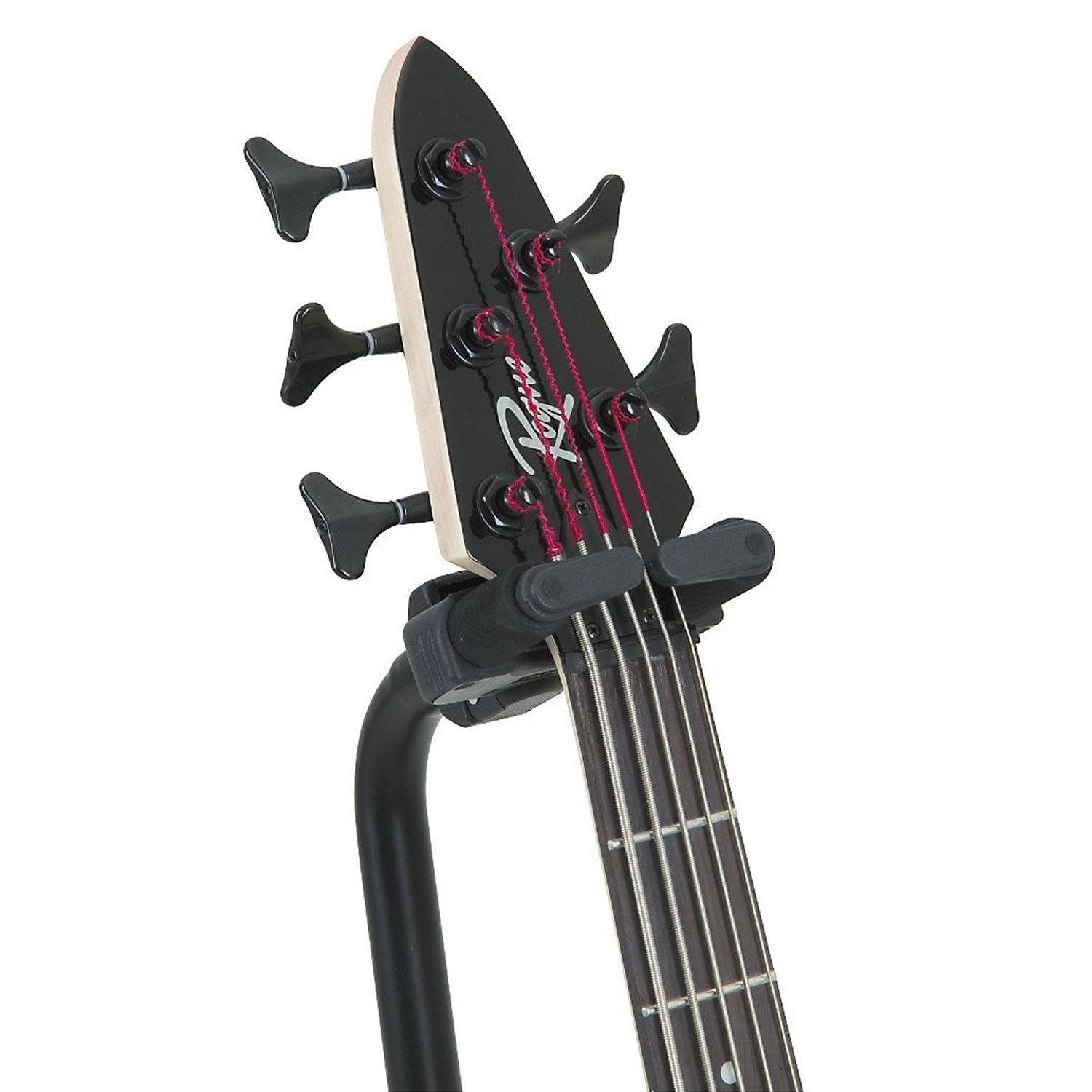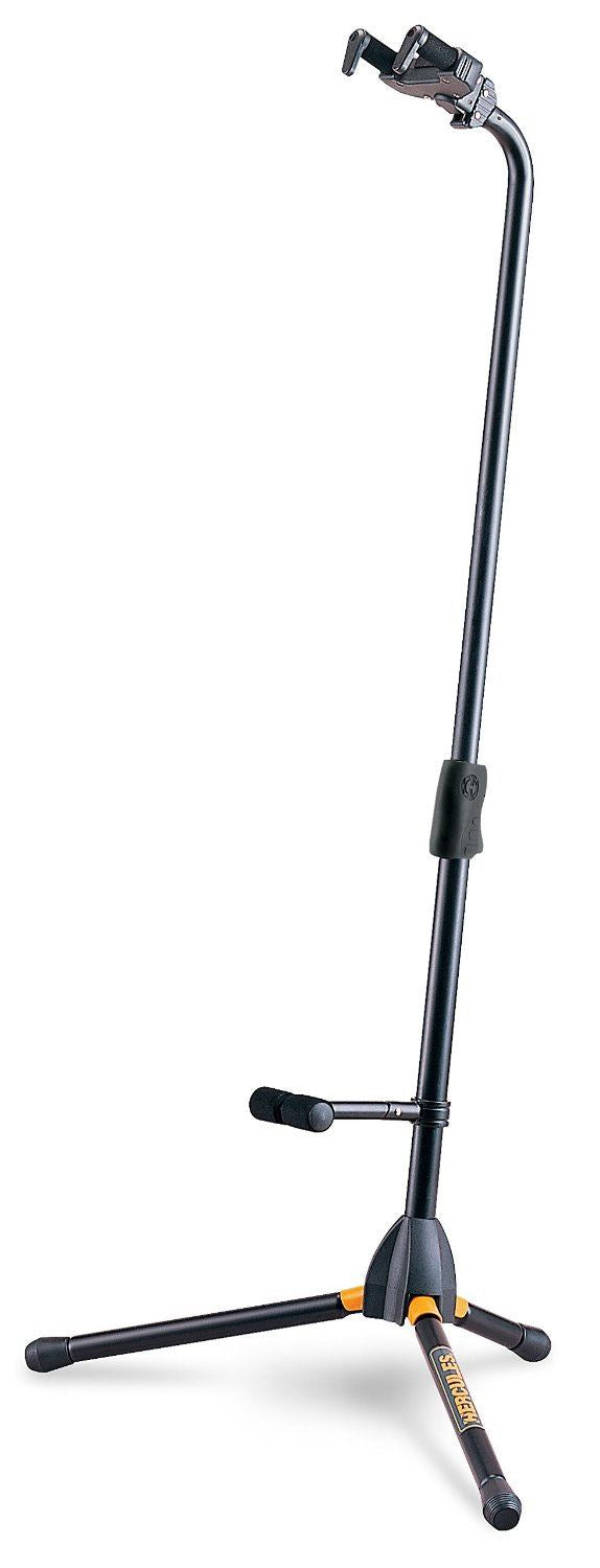 The Single Guitar Stand features the innovative Hercules Auto Grab System (AGS) yoke: the arms turn in and up with the weight of your guitar to hold it securely and simply open up when you lift it off. All contact points with the instrument feature Specially Formulated Foam (SFF) rubber to protect your guitar's finish. Also features the Hand Grip Height Adjuster, which makes adjustments a breeze with a locking pin to secure the stand in place. A folding backrest flips down to support your guitar and back up for storage and transport.