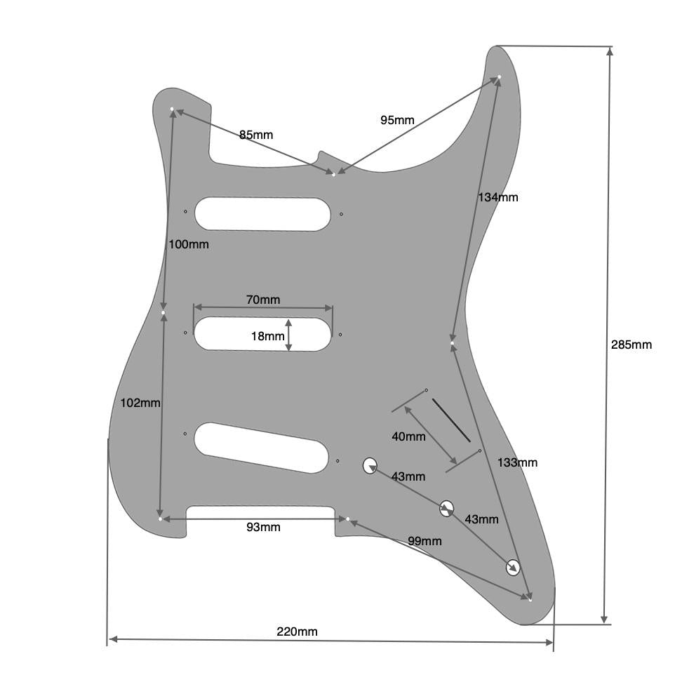 This scratchplate is compatible with Fender USA, Squier, Mexican, and Japanese models. However, due to subtle differences in specifications across various models, we recommend checking our detailed diagram before purchase to ensure an accurate fit.
