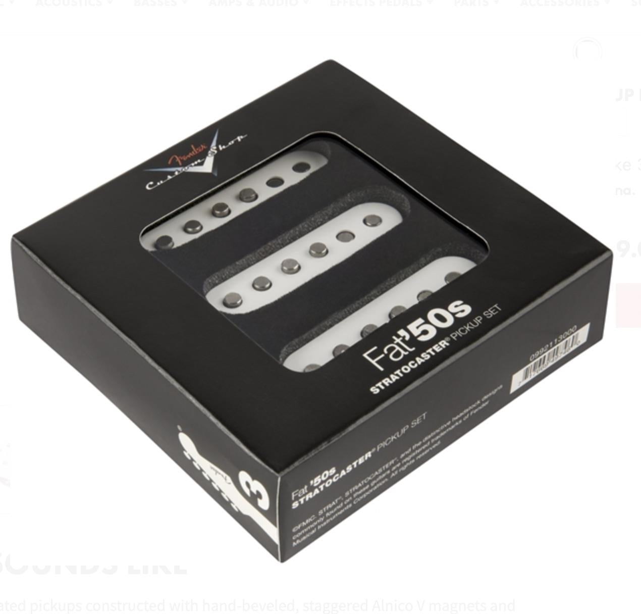 The Fender Fat '50s Strat Pickup Set gives you calibrated pickups constructed with hand-beveled, staggered Alnico V magnets and Formvar magnet wire and they deliver enhanced bass response without the harsh midrange. The middle pickup is reverse wound/reverse polarity for hum canceling in positions 2 and 4.