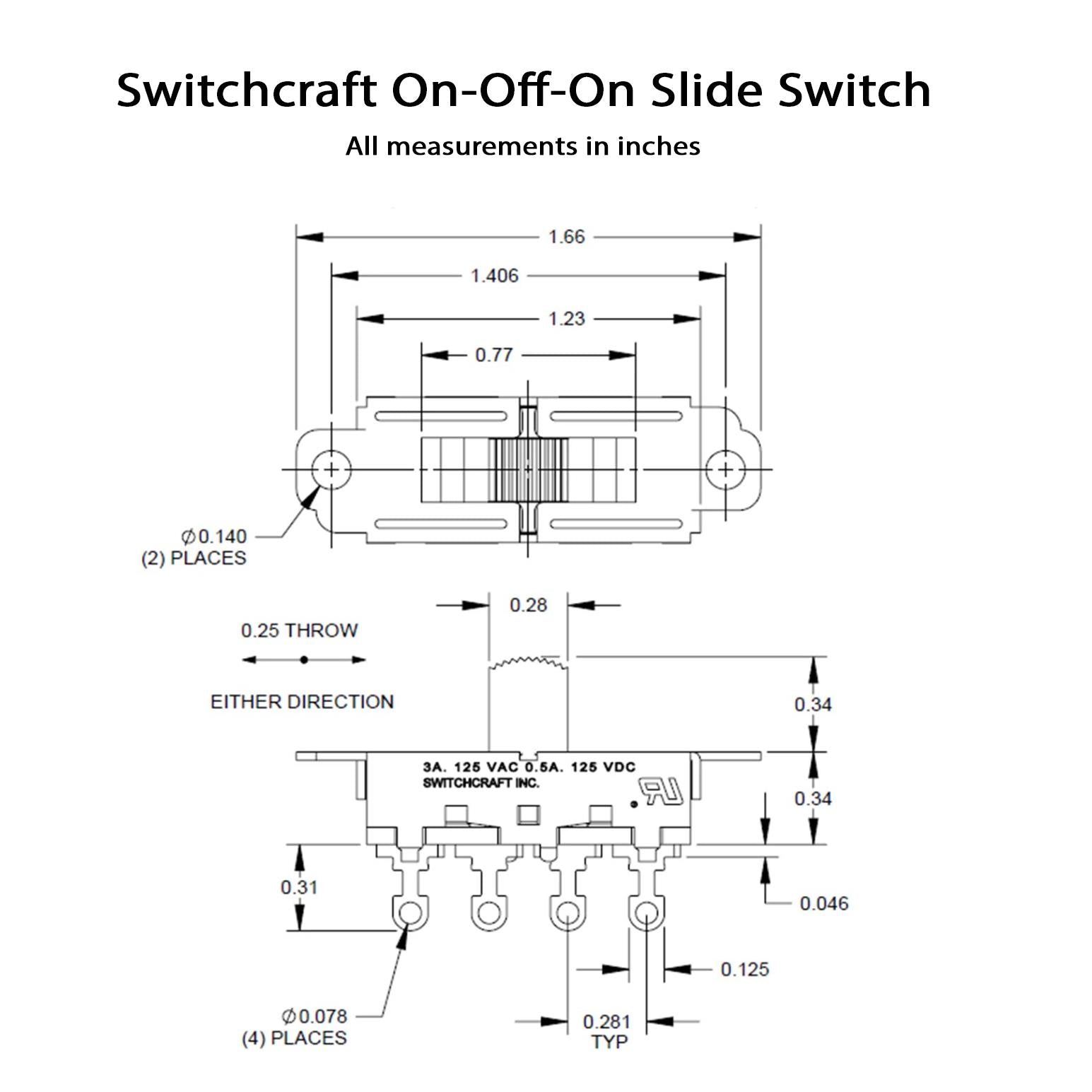 Switchcraft On-Off-On Slide Switch, for Mustang/ Jazzmaster