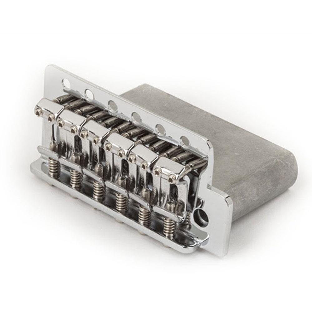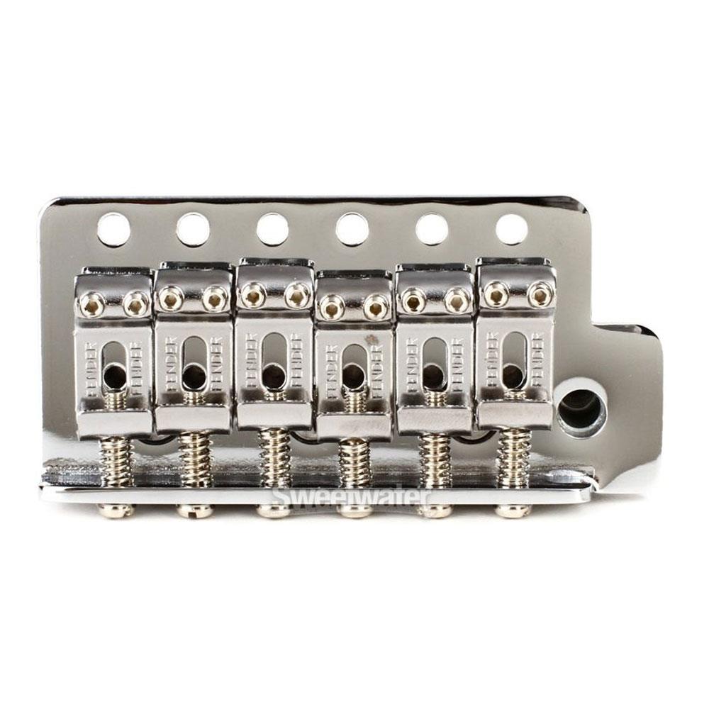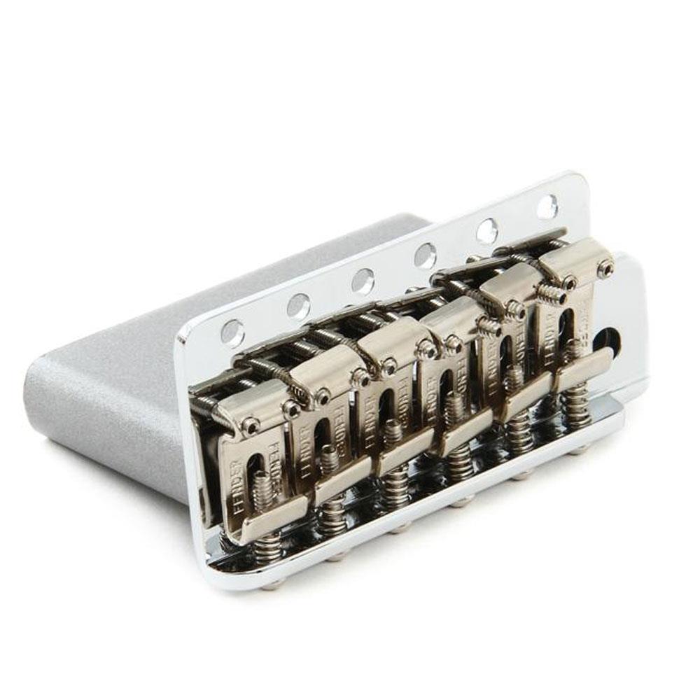 Vintage-style tremolo bridge assembly for use on American Vintage series Stratocaster models. Includes six "Fender"-stamped bridge saddles with mounting screws, tremolo claw, tremolo springs, tremolo arm with tip, tremolo arm tension spring, string tree, .050 hex adjustment wrench and mounting screws.