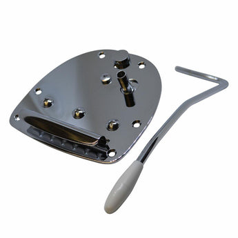 High quality steel pivoting bridge and spring-action tremolo, as originally designed for Jaguar and Jazzmaster solid body guitars.