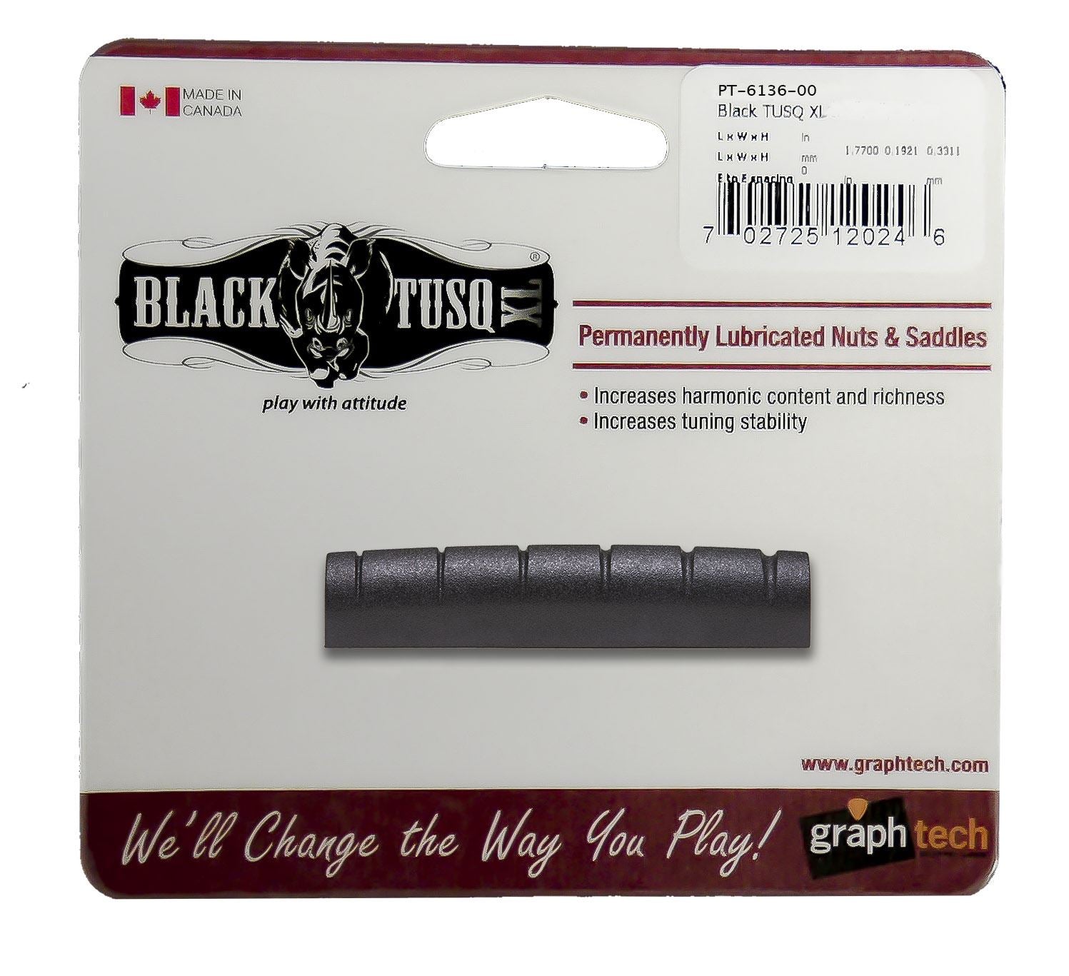 With Black TUSQ XL you will hear more richness from every note you play.  Engineered from the same material as our highly esteemed TUSQ, it has all the tonal benefits, bringing out the hidden harmonics by transferring your strings vibrations efficiently to the guitar.  Black TUSQ XL is consistent from piece to piece, and within each piece, to offer you harmonically rich tones without the problems associated with natural materials.