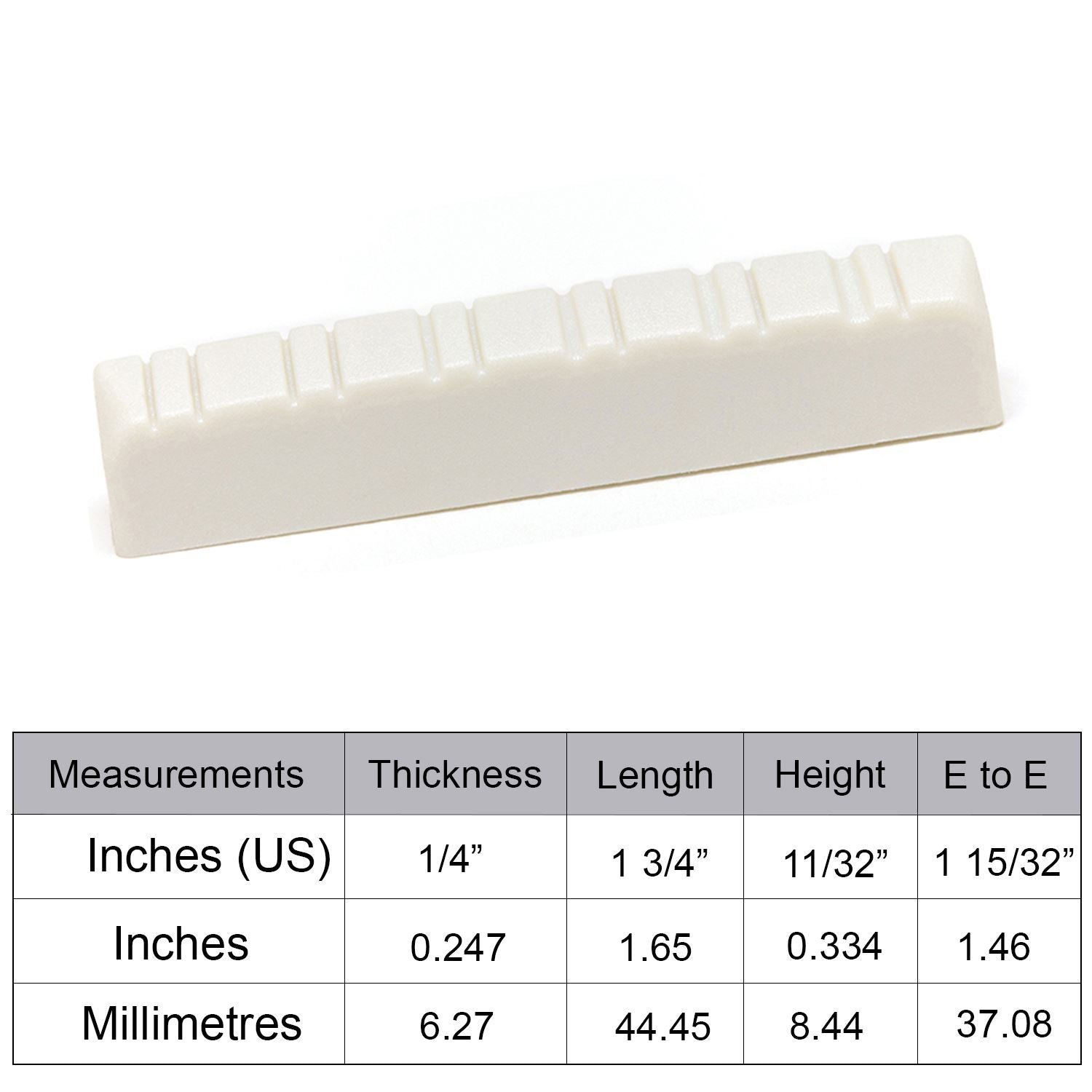 Only had to make minor adjustments to nut slots height. Otherwise dimesions were spot on. Was fitted to a mid 70s Ephiphone 12 string acoustic guitar model Nova 245. Tusc nuts are superb...a first class product quickly delivered (as always) by Northwest Guitars.