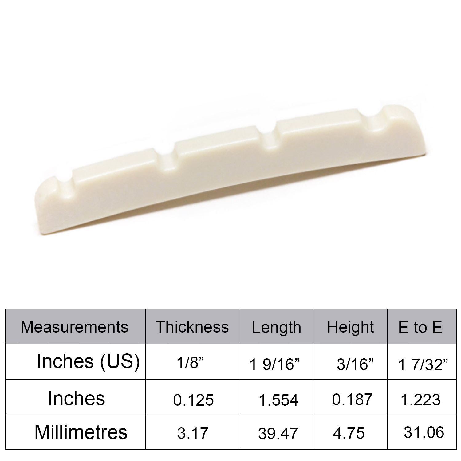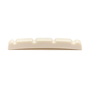 TUSQ nuts and saddles have rich tone and sustain, without the inconsistency found in ivory, bone and other natural materials. Bone and ivory have hard and soft spots (grain) throughout each piece, hampering consistent transfer of vibrations to the guitar top.