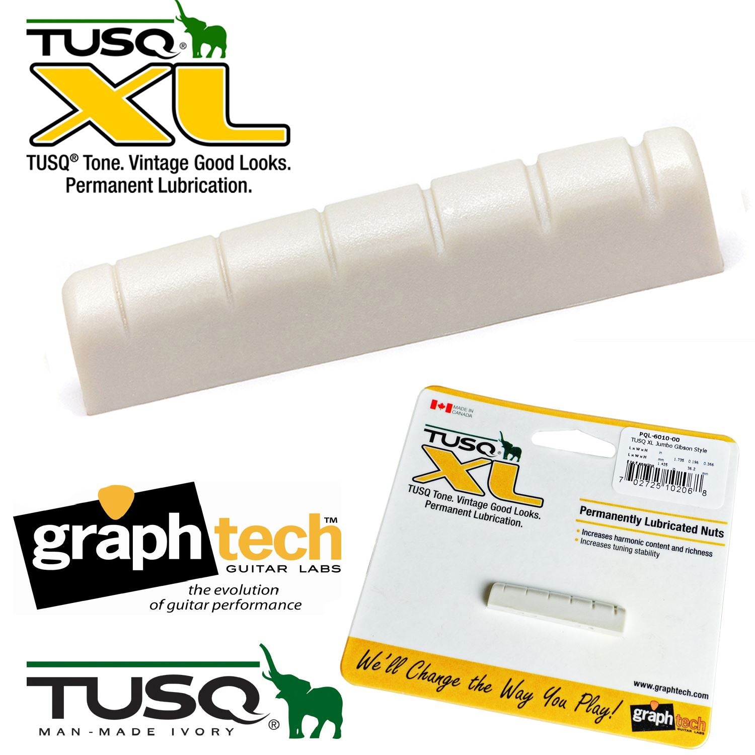With TUSQ XL you will hear more richness from every note you play.  Engineered from the same material as our highly esteemed TUSQ, it has all the tonal benefits of TUSQ, bringing out the hidden harmonics by transferring your strings vibrations efficiently to the guitar.  TUSQ XL is consistent from piece to piece, and within each piece, to offer you harmonically rich tones without the problems associated with natural materials.