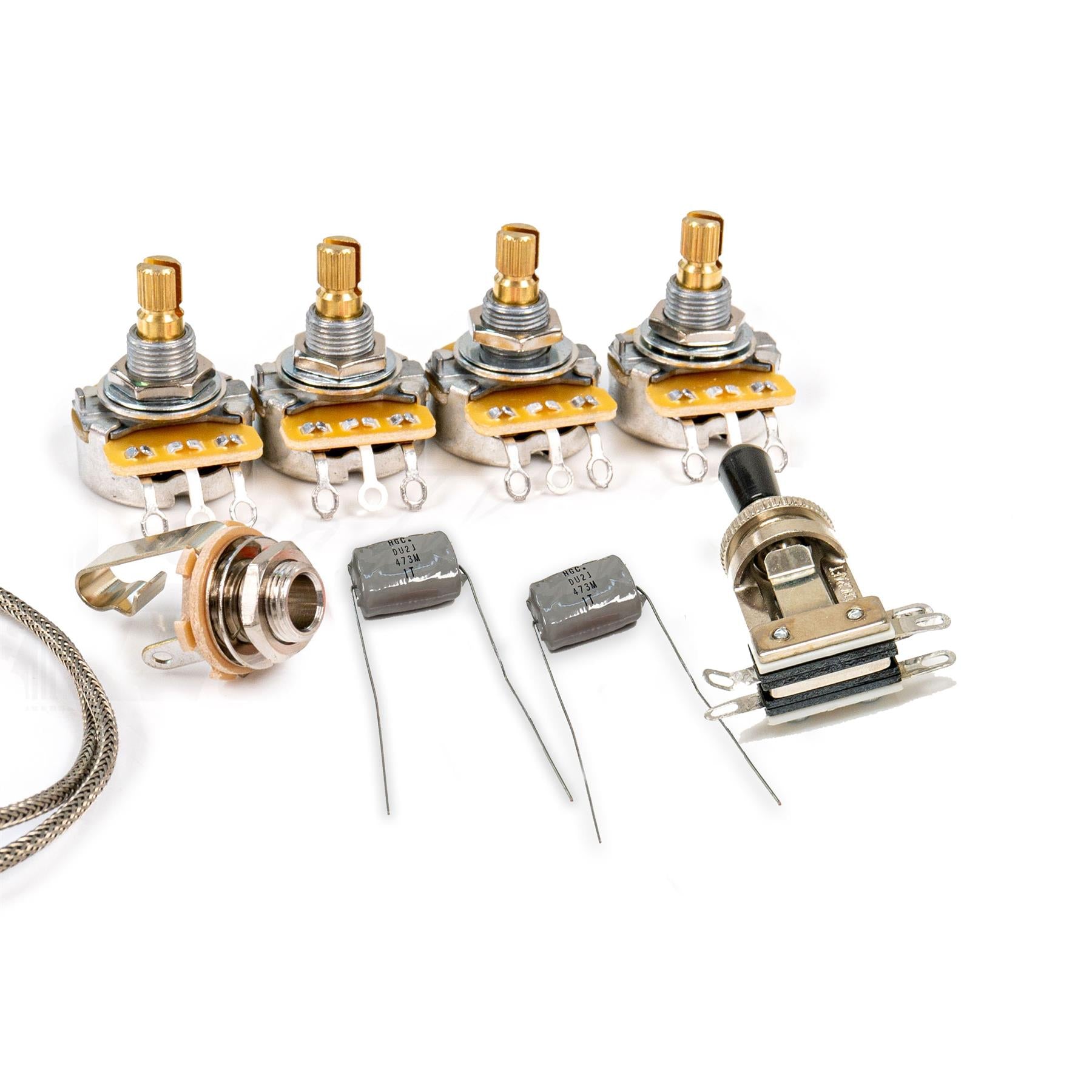 This ES-335 Wiring Kit is a powerful upgrade for the stock electronics of your Gibson/Epiphone 335 Packed with high quality components from top manufacturers, its an inexpensive way to improve the tonality of your guitar.