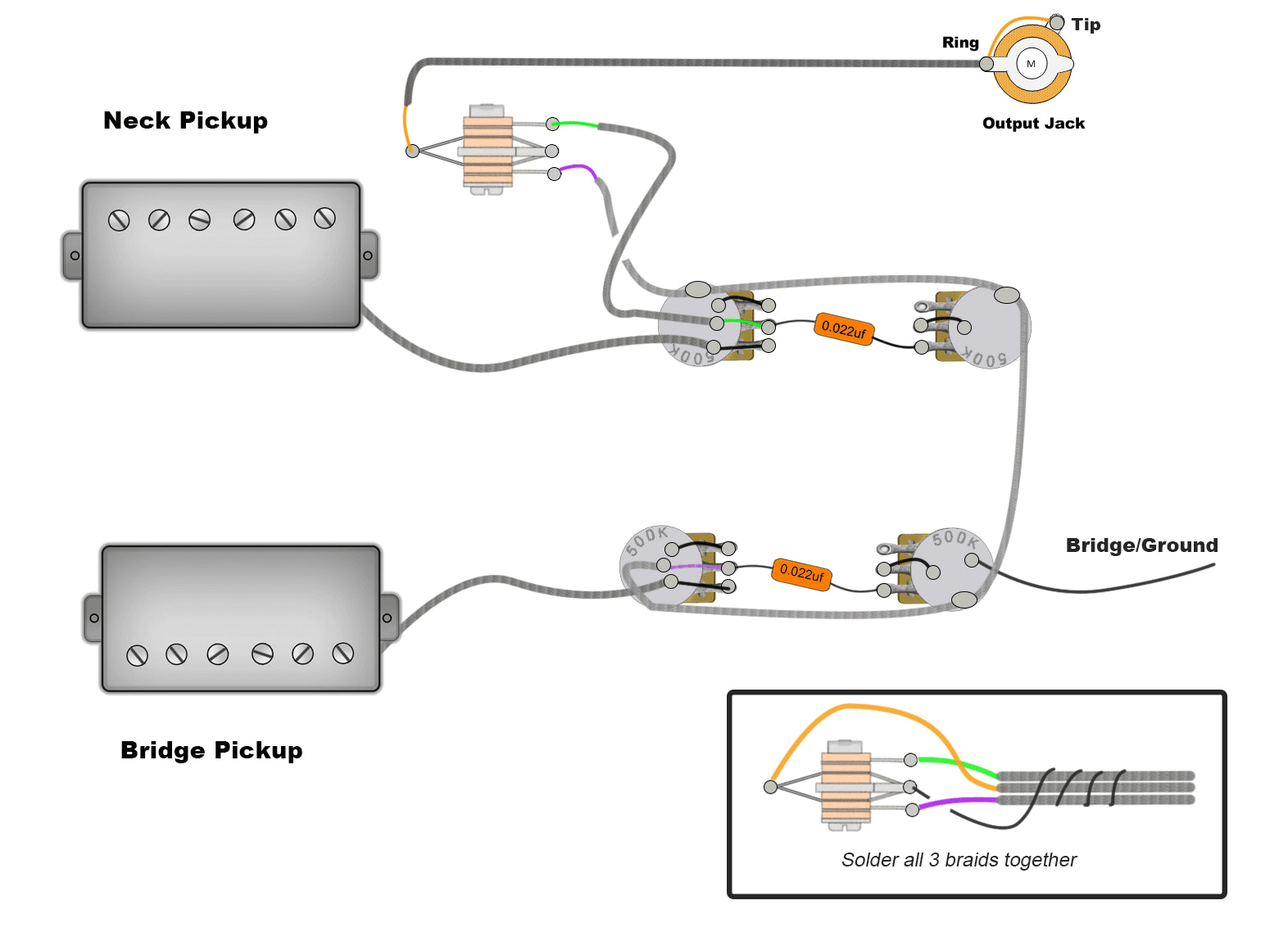 We supply audio taper pots for both volume and tone as these produce a smoother and more rounded sweep. All pots are metered and matched to ensure a perfect balance of tone and volume across all switch positions.