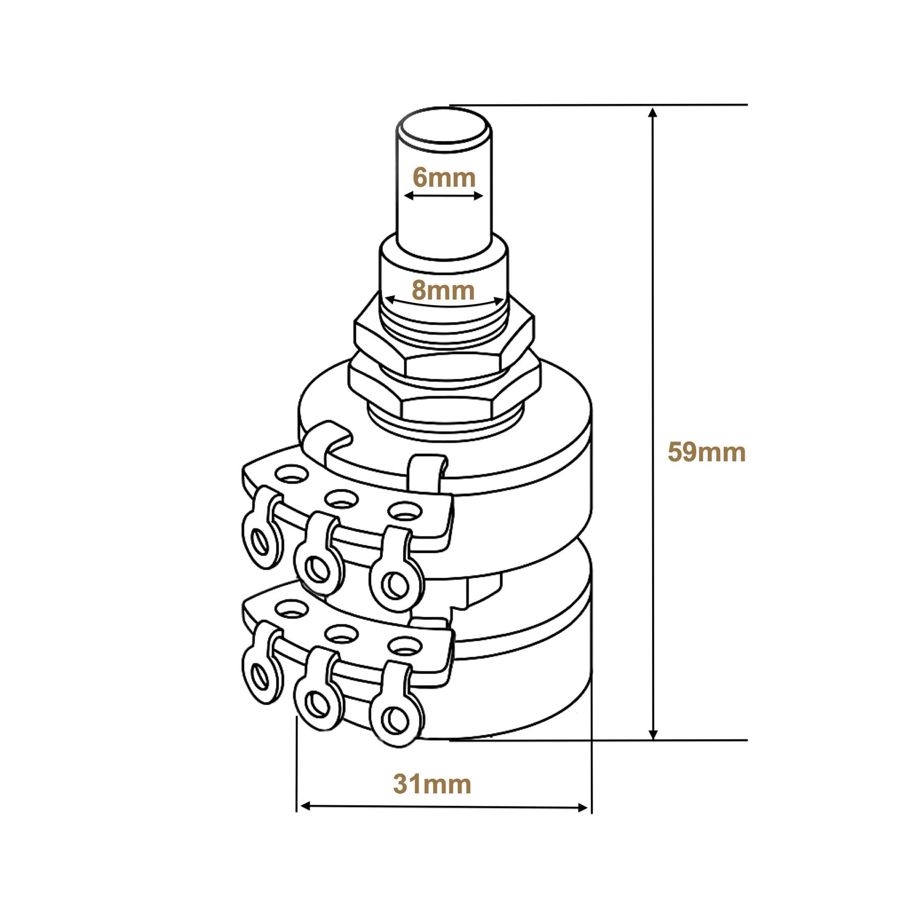 - Perfect for Jazz Basses (separate pickup volumes), dual volume/tone guitar wiring, or compact pedal projects.