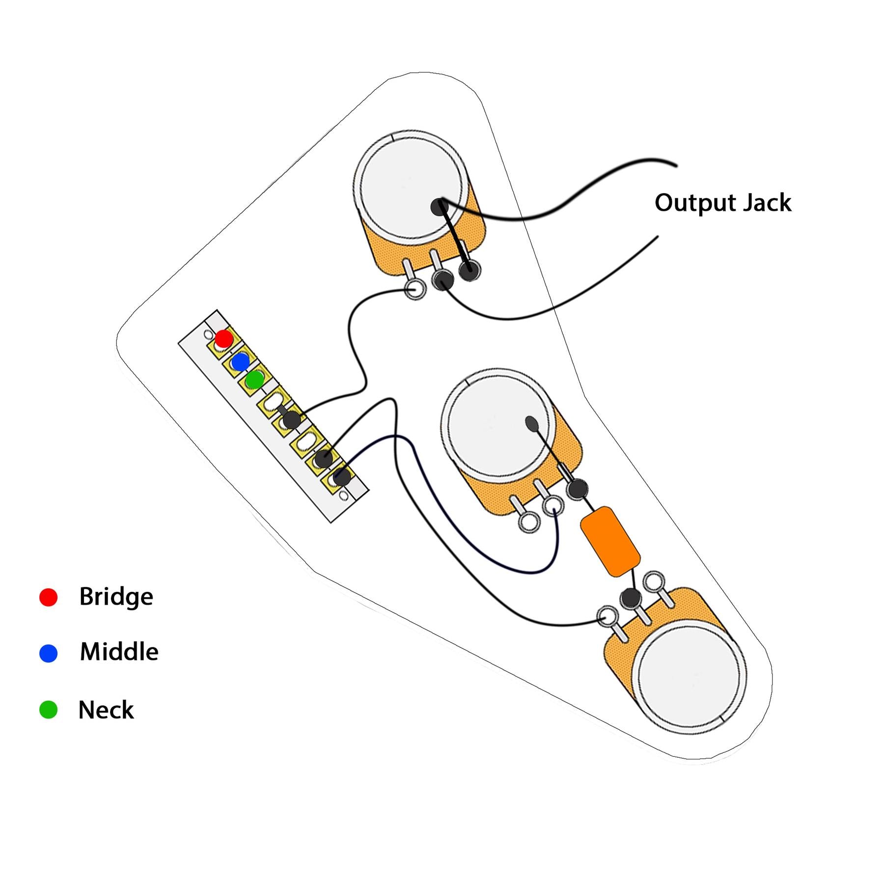 Hand built by us here in the Uk, this configuration is a direct replacement for the electrics found in most Squier Stratocasters. We've used ultra reliable Alpha audio taper pots (CTS pots are too big for Squier scratchplates), and we've upgraded the switch, capacitor and wire.