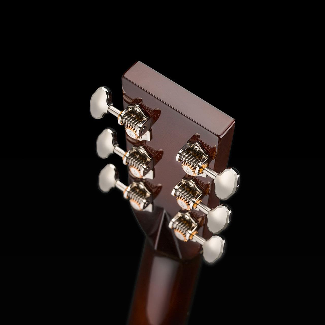 The tuning mechanism uses permanently secured, sealed screw connections to maintain alignment and minimise maintenance requirements. Dimensions are based on common production guitar specifications, allowing straightforward installation or replacement on most series instruments.