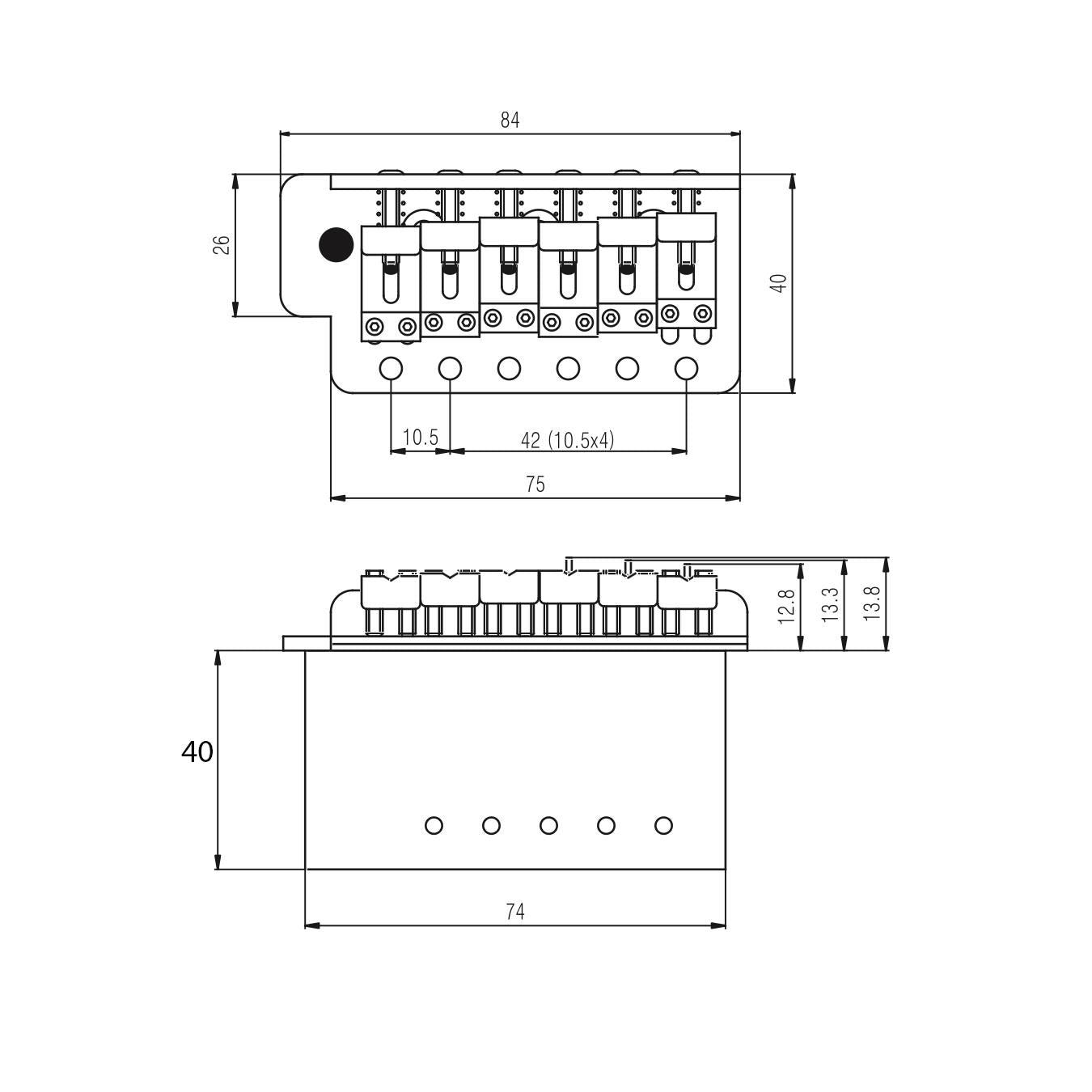 Optimised as a direct replacement for most Squier Stratocaster and other import Strat-style guitars using a 6-point tremolo system.