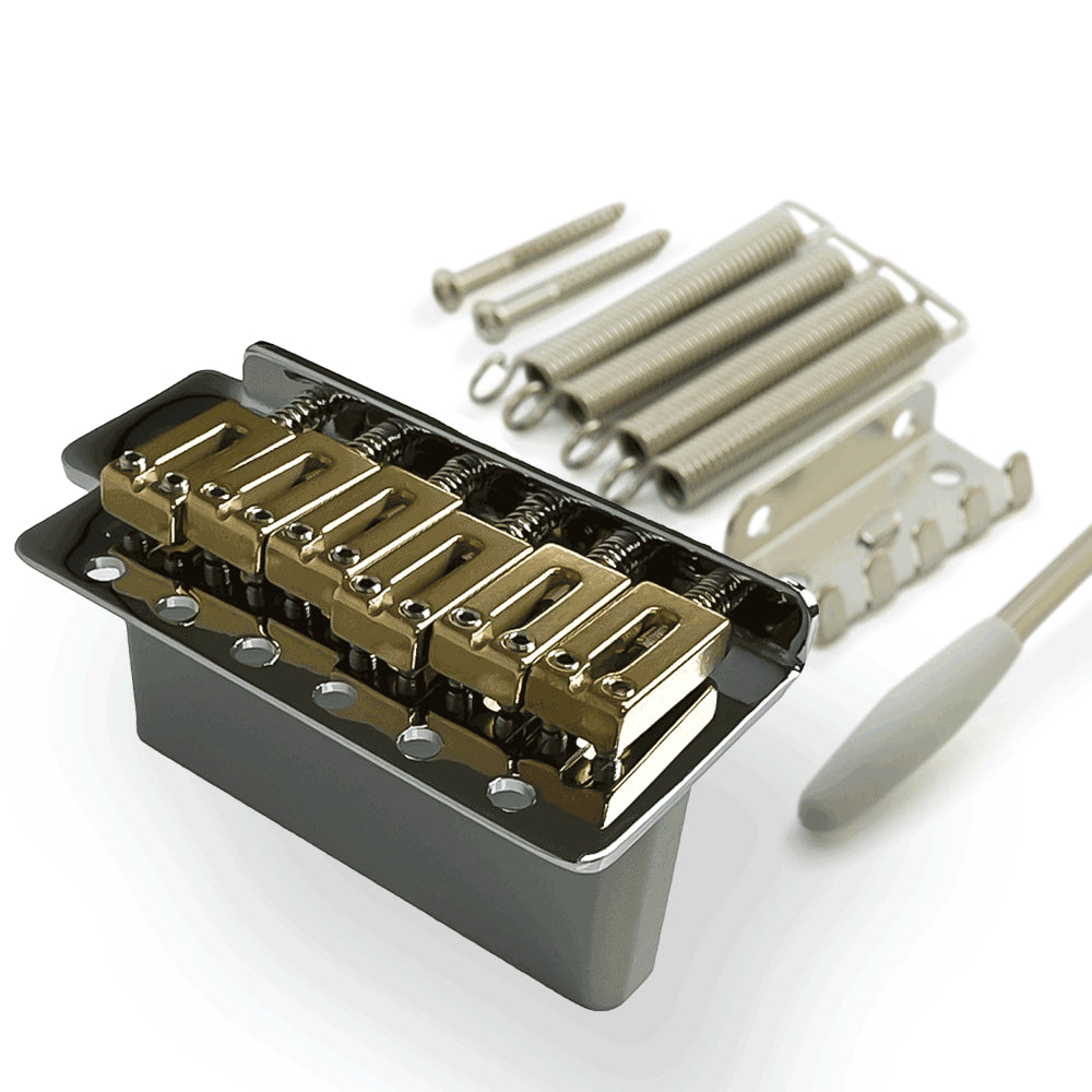 A high-quality vintage-style tremolo designed to deliver improved sustain, cleaner note definition, and more stable tuning performance. The BS005 uses precision-machined brass saddles and a solid brass sustain block, providing a clear tonal upgrade over standard zinc alloy components.